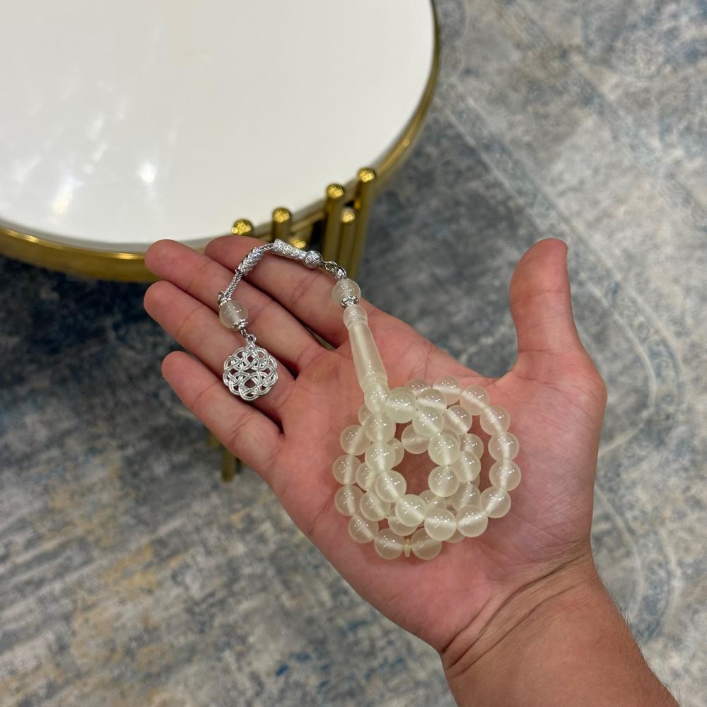 سبحة بكلايت مضيئة تتميز بأنها تنور بالظلام و مقاومة للقطعالنوع : بكلايت مضيءاللون : أبيض عدد الخرز :٤٥